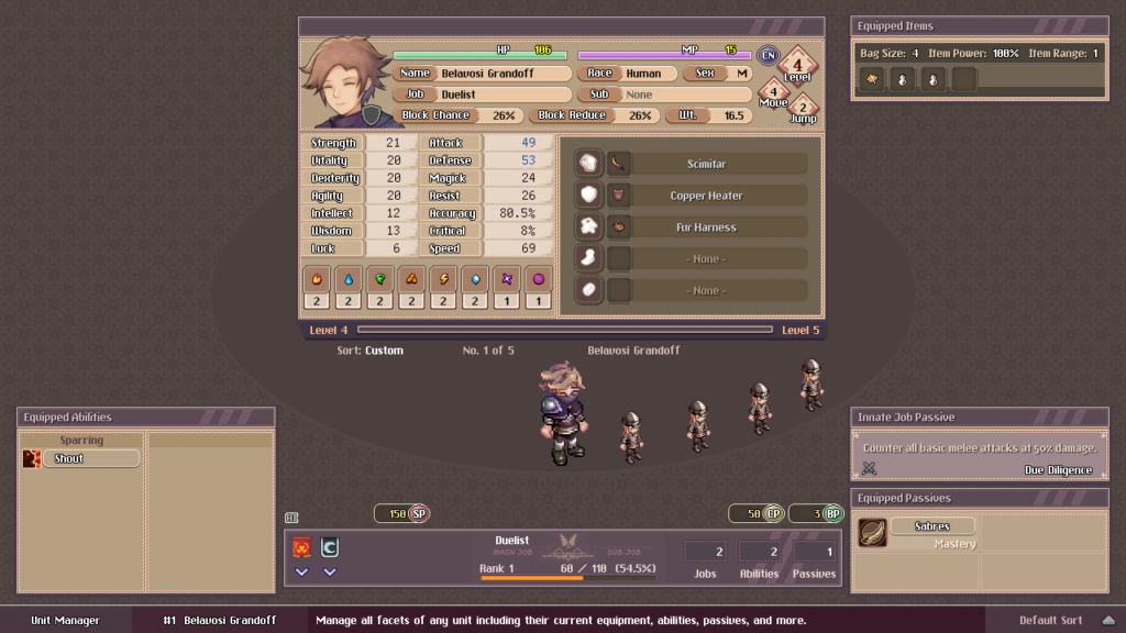 In the Ability Manager, you can equip another learned Job’s Ability Set which becomes your Sub Job. The unit will also receive a stat bonus based on the Job and it’s current Rank.